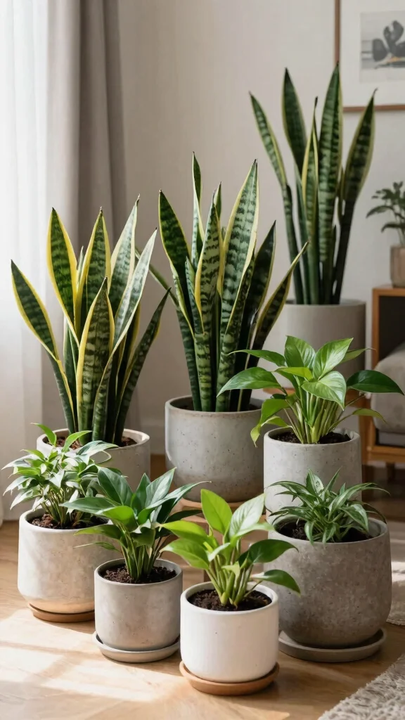 – Selection of indoor plants (snake plants, pothos, or succulents)