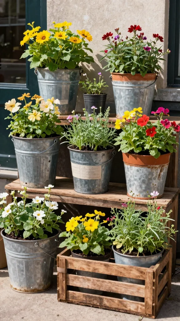 Get creative with recycled containers for an eco-friendly gardening option that saves money and adds character to your space. Items like old buckets, coffee cans, or wine crates can be transformed into charming planters. Using these materials not only reduces waste but also encourages a sustainable lifestyle.
