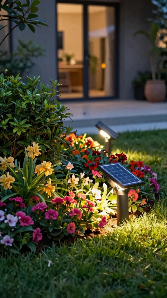 Installing solar landscape lighting is straightforward. Start with a simple layout that highlights a path, plant, or feature, then position lights so the solar panel isn’t shaded. Ground spikes should be inserted 6-12 inches into soil, at a slight angle (about 15-45°) toward the area you want lit. For wall-mounted lights, use exterior screws and seal hardware. Do a quick night test to adjust direction and brightness, then secure the units. Maintenance is simple: wipe panels with a damp cloth, check for debris, and replace batteries every 2-3 years. With these steps, you’ll have the best garden lighting solutions using energy-efficient solar landscape lighting.