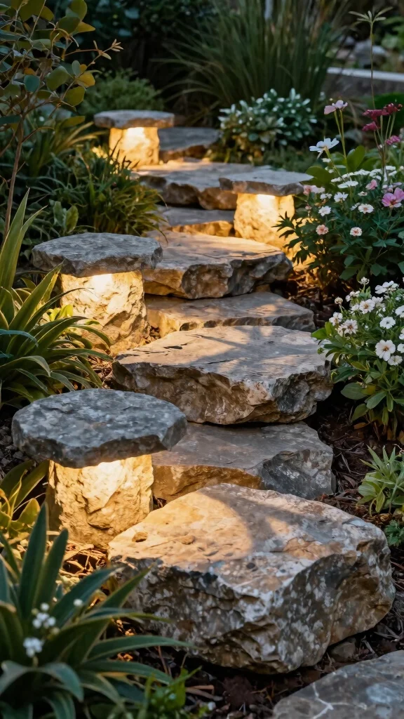 Stone pathway inset lights offer an innovative way to illuminate garden paths while keeping the focus on natural elements. Integrated into the stones, these lights provide subtle illumination that enhances safety without overshadowing the beauty of your landscape.
