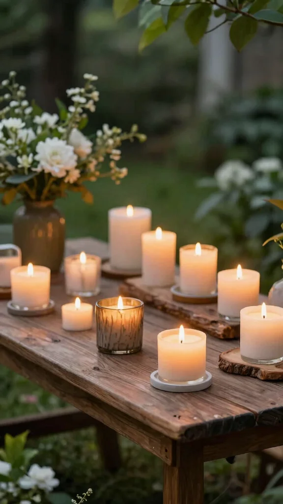 Aromatic candle displays not only provide soft lighting but also infuse delightful fragrances into your garden. Grouping candles in natural material holders creates an inviting atmosphere, perfect for relaxation and meditation.
