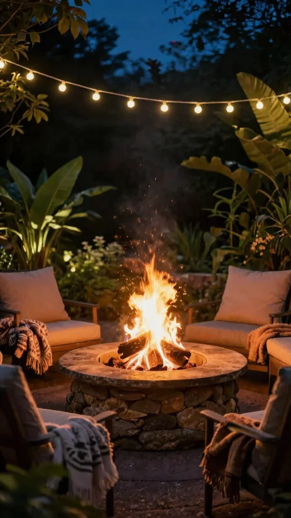 Consider surrounding your fire pit with comfortable seating and additional lighting, such as string lights or lanterns, to create a magical gathering spot.