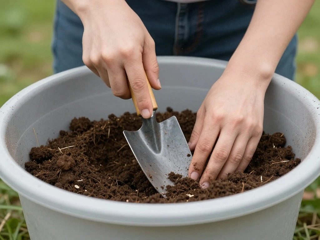 Use your garden trowel or shovel to mix thoroughly until the ingredients are evenly distributed. Why this matters: A well-mixed soil ensures that all components work together to provide the best environment for your plants.