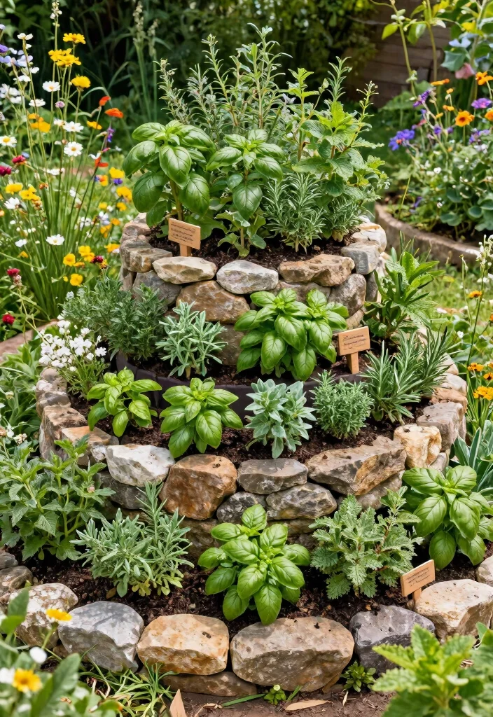 An herb spiral will not only look beautiful but also provide a continuous supply of fresh herbs at your fingertips.