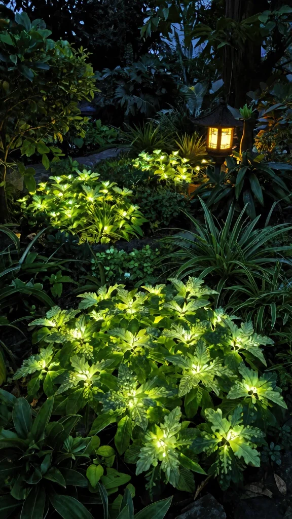 Bioluminescent plants fuse nature with innovation, creating a captivating and enchanting garden atmosphere.