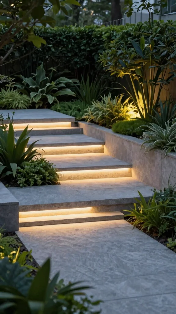 Integrated garden lighting offers a minimalist approach to outdoor illumination. By embedding lights within the landscape, you can achieve a clean and sophisticated look that blends seamlessly with nature. This trend is perfect for modern gardens, featuring recessed lights in steps or LED strips along garden beds.