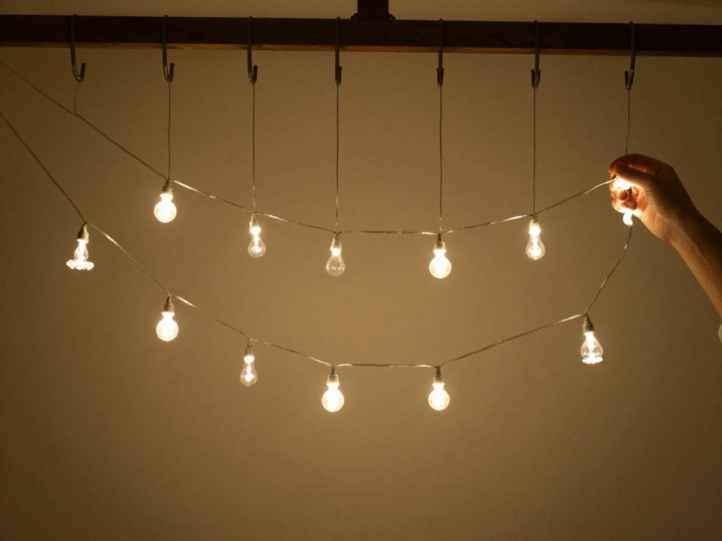 With the hooks in place, it’s time to hang your string lights. This is where your vision starts to come to life!
