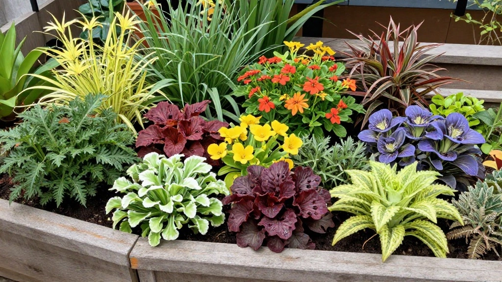[Image Prompt: Show a variety of plants suitable for container gardening, highlighting their colors and sizes.]