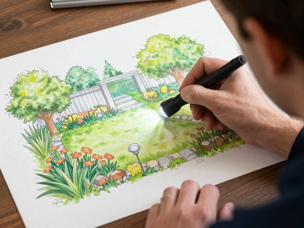 - Sketch a simple layout of your garden, marking potential uplight locations.