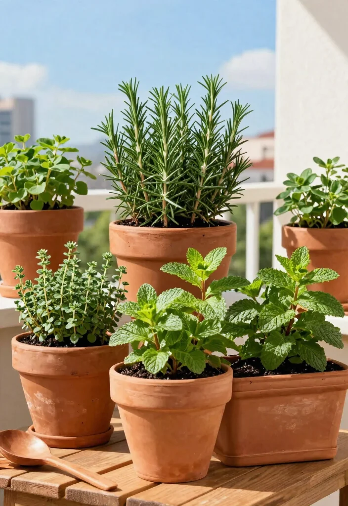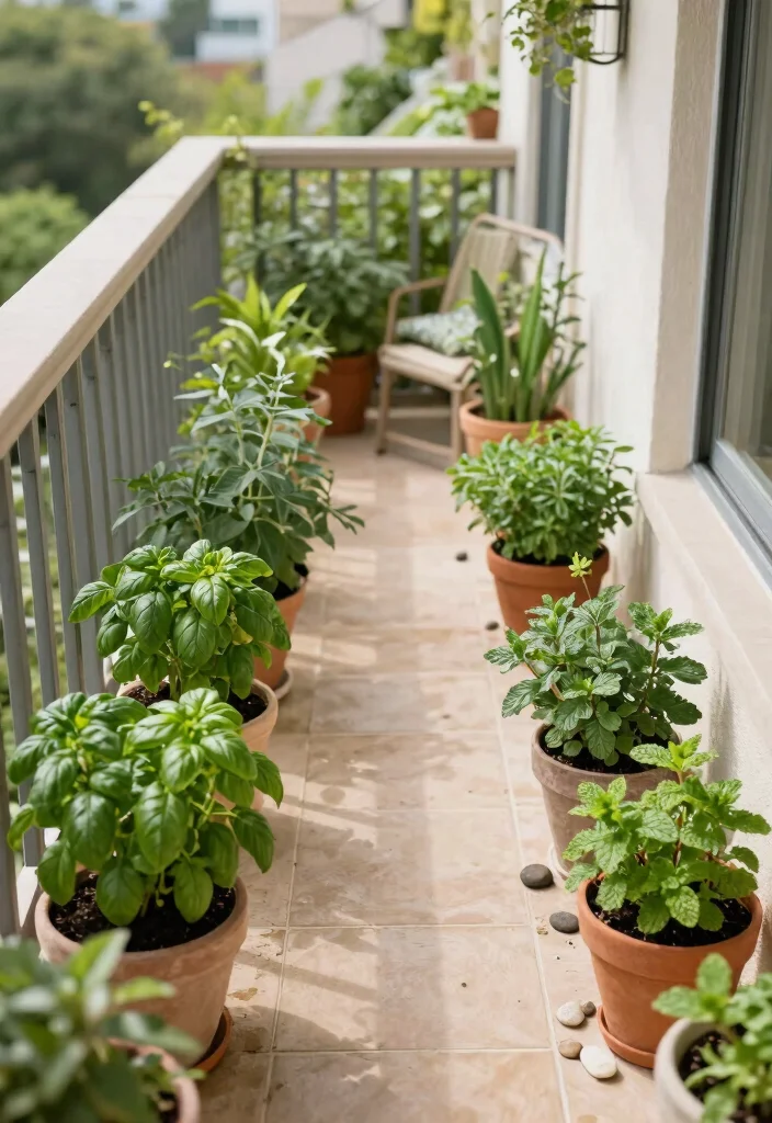 These plants thrive on urban gardening conditions and create a fragrant, productive balcony garden.