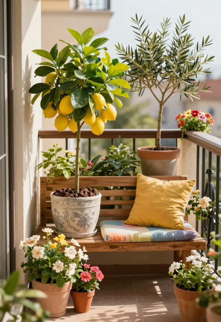 Bring the Mediterranean feel to your balcony with dwarf olive and citrus trees. These compact beauties fit nicely in larger containers and add a unique flair to your outdoor space. Imagine plucking fresh lemons or olives right from your own garden!