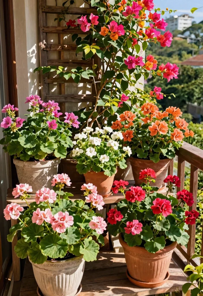 Infuse your balcony with vibrant colors by incorporating flowers like geraniums, petunias, and bougainvillea. These lively plants will brighten your space and create a cheerful atmosphere.
