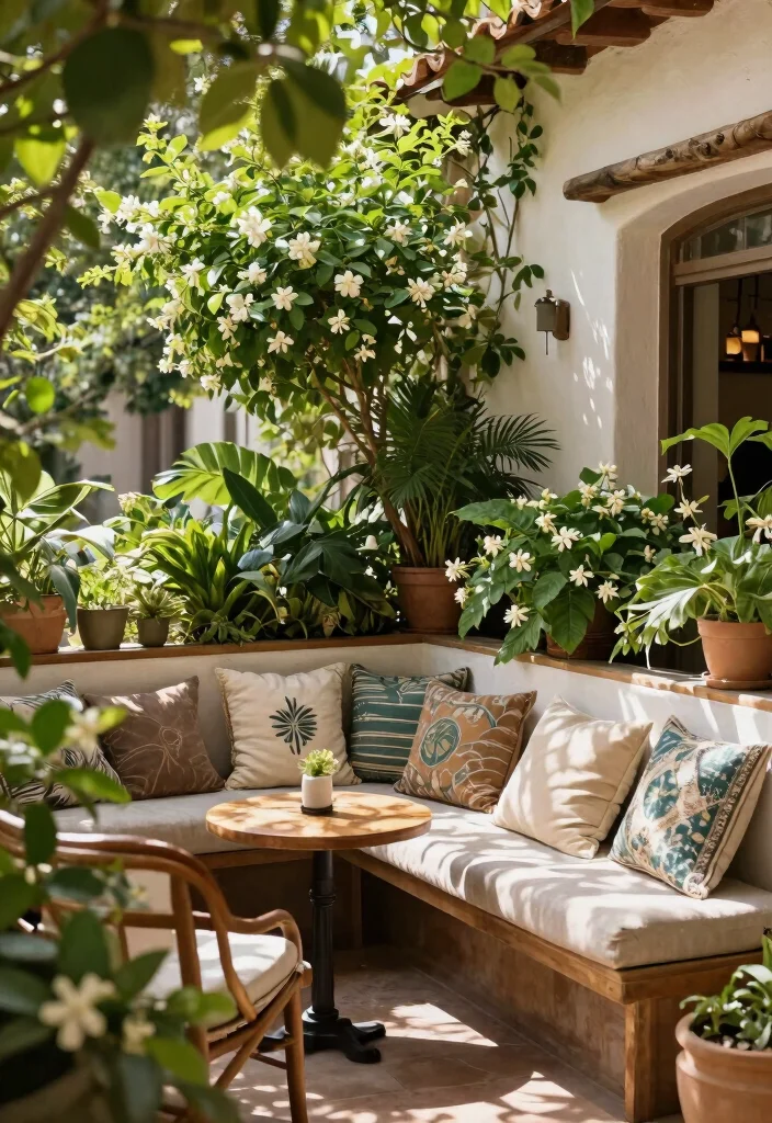 These aromatic plants beautify your space while providing a soothing scent that enhances your lounging experience. Position your seating among these containers to create an inviting nook for enjoying morning coffee or evening dinners al fresco. Add some decorative pillows and a small table to complete your cozy retreat.