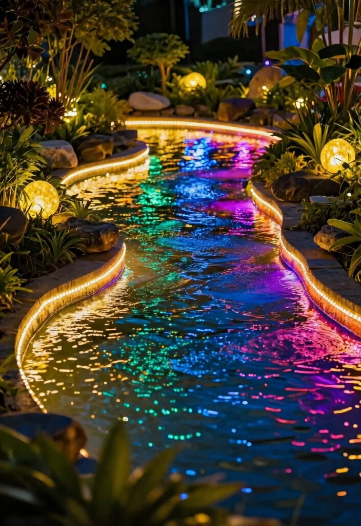 Kick off with a mix of pond lighting ideas that highlight water, texture, and nearby plants. Try submerged LEDs to illuminate the pond floor and shimmering fish, add a few spotlights on rocks or a waterfall to create reflections, and line the edge with path lights for safety and style. Choose warm white (2700–3000K) for an inviting glow or color-changing LEDs for dramatic scenes. Use soft, angled lighting to avoid glare on the water, and balance outdoor lighting with hidden cables and weatherproof fixtures. This combo boosts pond aesthetics, garden water features, and nighttime garden decor.