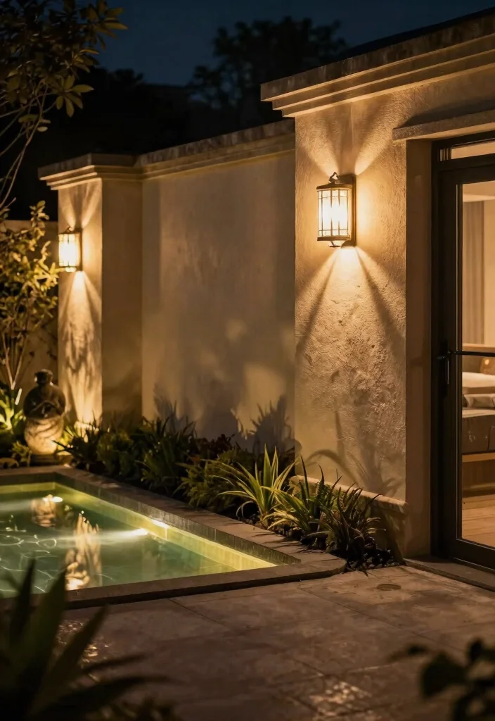 Position wall sconces to highlight features like sculptures or cozy seating areas. Opt for LED bulbs to keep energy costs low while enjoying long-lasting illumination. This approach adds sophistication and structure, making your garden feel more inviting.