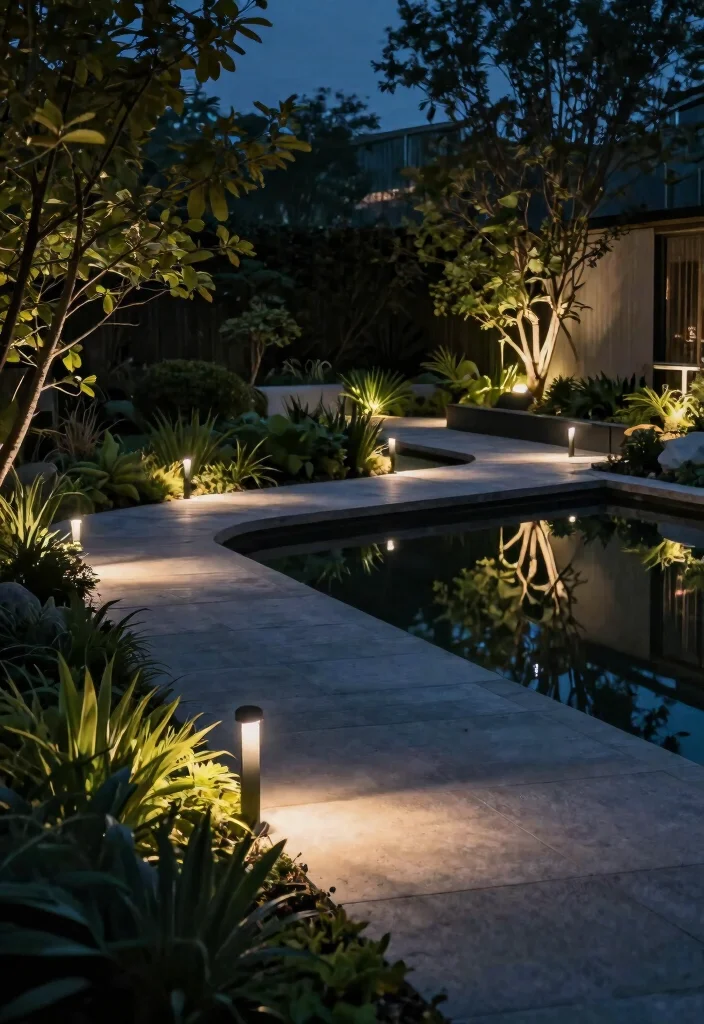 Recessed lighting provides an elegant and unobtrusive solution for modern gardens. By installing these lights flush with the ground around your pond or pathways, you enhance aesthetics without overwhelming the space.