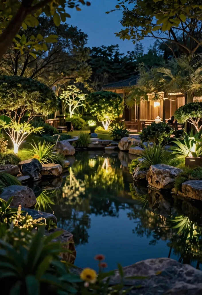 Enhance water features: Use illuminated fountains and fiber optic lights to make your garden water features stand out at night.