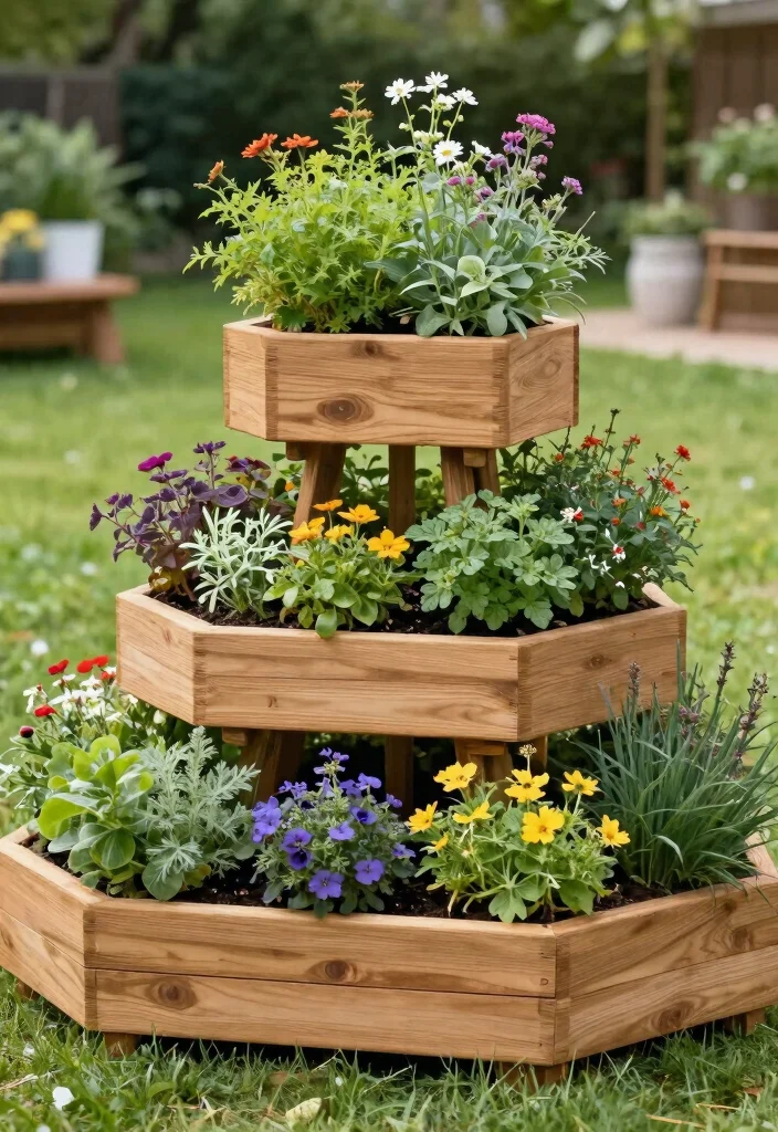 These tiered boxes not only add charm to your backyard but also maximize your planting space creatively.