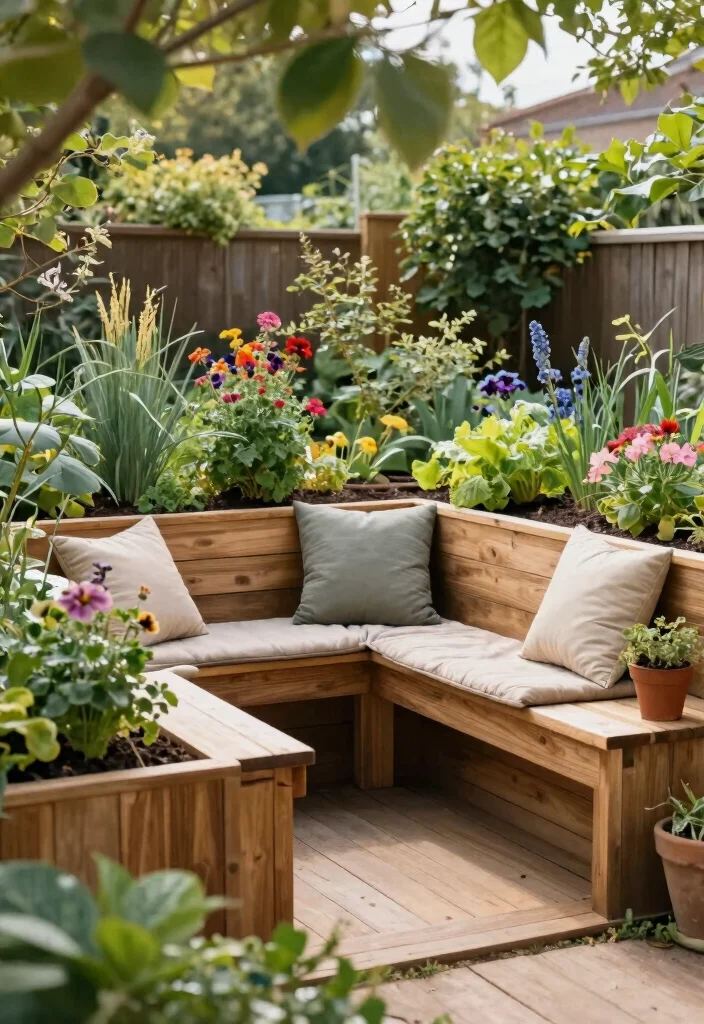 Imagine combining comfort with functionality in your garden! Raised beds that include built-in seating create a peaceful retreat where you can relax and enjoy your gardening efforts. This layout serves as both a planting area and a cozy spot to unwind.