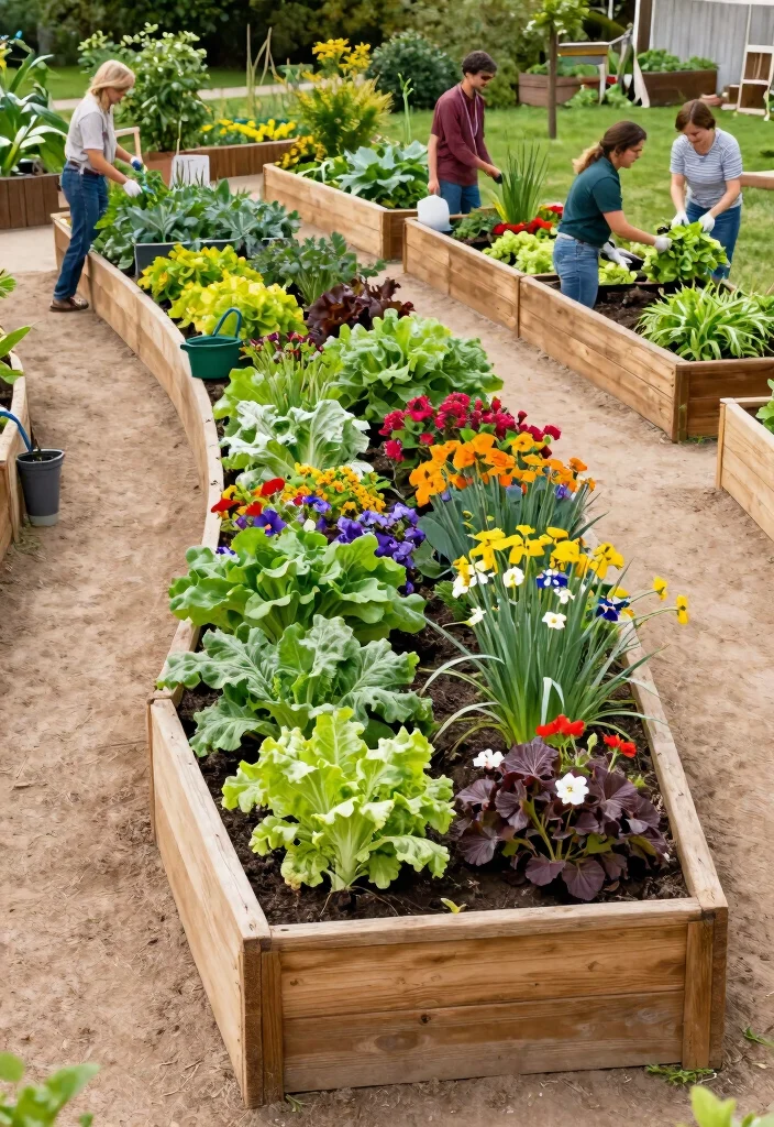 This practical layout fosters a welcoming environment for families and friends to enjoy gardening together.
