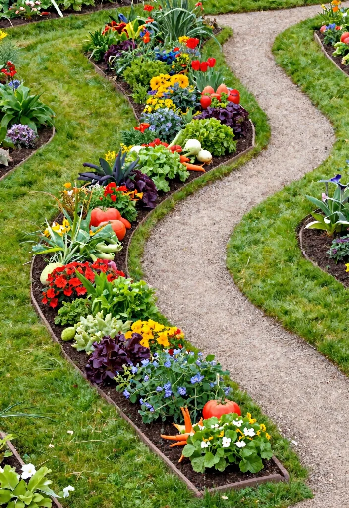 Want to spice up your garden layout? Zigzag-patterned raised beds create an interesting visual while maximizing planting space. This design allows you to plant various species closely together, creating delightful pathways that invite you to explore your garden.