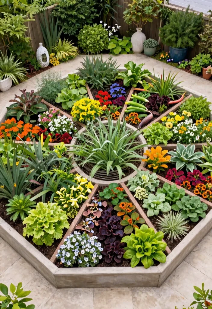 Hexagonal raised beds offer a unique shape that maximizes your garden space beautifully. This layout allows for a variety of flowers and vegetables, creating stunning patterns that catch the eye.