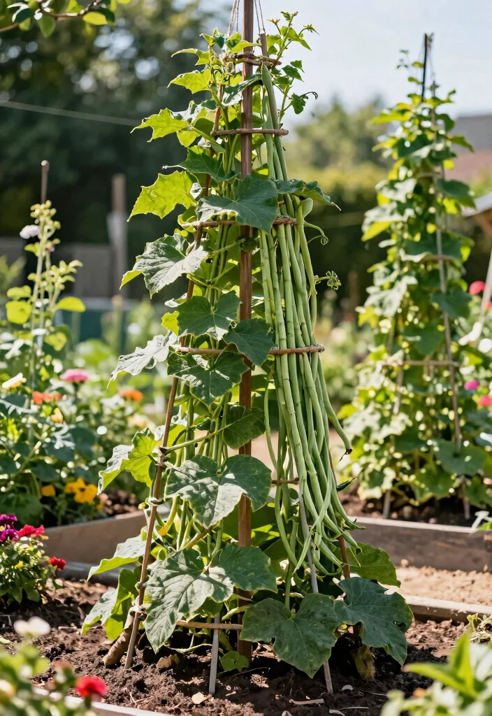 If you’re dreaming of a garden that’s both beautiful and productive, a rustic wooden trellis for climbing beans is your answer. This charming structure not only supports your plants but also enhances your garden’s aesthetic. Watch as the beans elegantly twine up, creating a lush green vista that delights the senses.