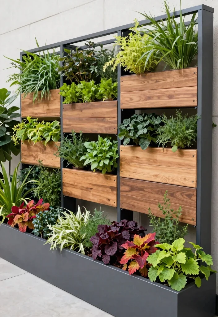 Create panels from various materials, such as metal or treated wood, integrating planting pockets for herbs or seasonal favorites.