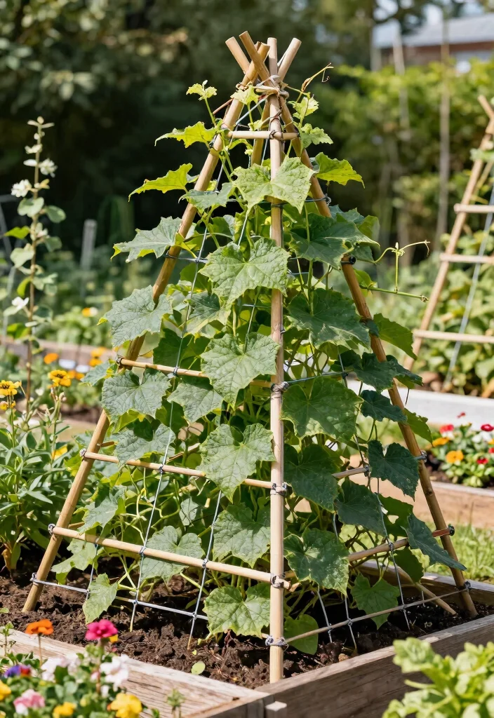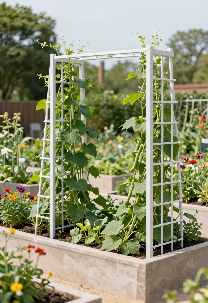 Fun fact: An A-frame trellis can boost vertical yield by up to 40% in a raised bed garden with trellis—perfect for squash and cucumbers. Secure a broad base and guide vines with jute for steady growth.