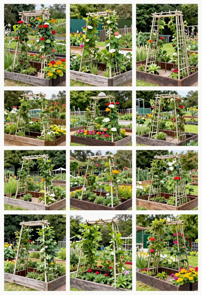 For those eager to grow a variety of vegetables vertically, a vertical grid trellis is the perfect solution. This design allows multiple plants to thrive in an organized manner, making maintenance a breeze.
