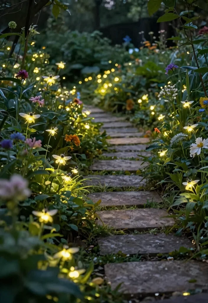 Incorporating solar firefly lights creates an enchanting experience, making your garden path a delightful evening retreat.
