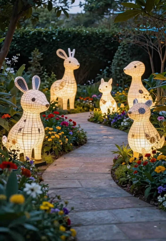 These sculptures illuminate beautifully at night, adding a touch of artistry that captivates during the day and enchants after dark.